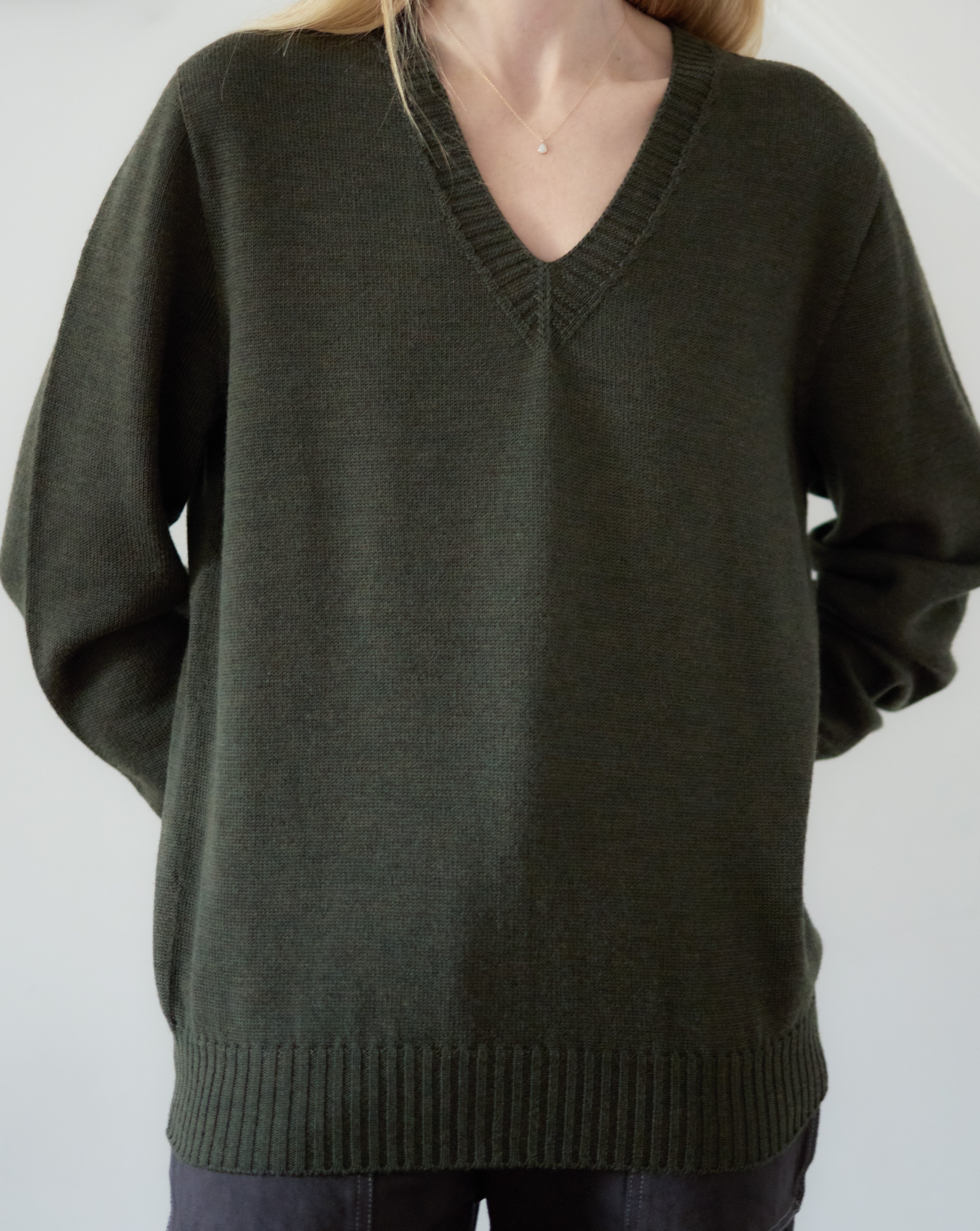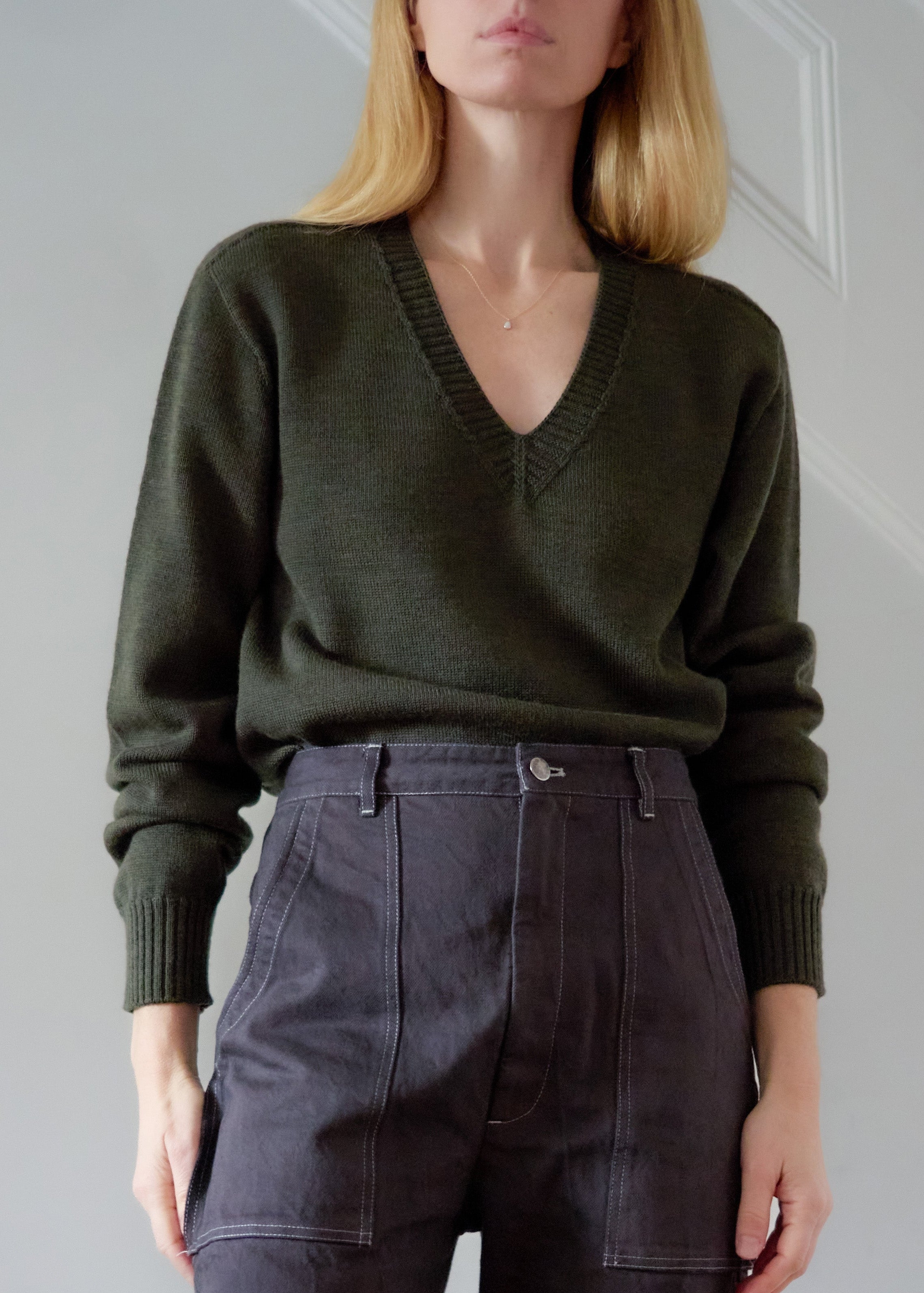 KN08 Charlotte sweater is crafted from Italian merino wool with a classic fit and deep V-neckline. Knit in New York City using advanced 3D tubular knitting machines.