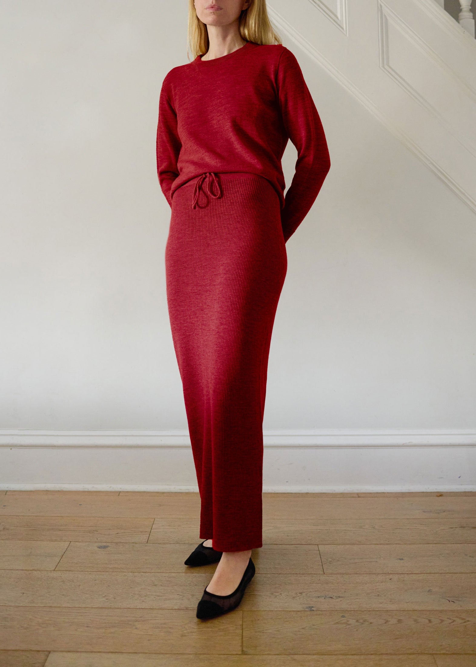 The Florence is a soft, tubular-knit skirt made of extra-fine Italian merino wool. Ultra-soft next to skin with a rib construction, and drawcord waist. Its seamless design creates a smooth, flattering silhouette.