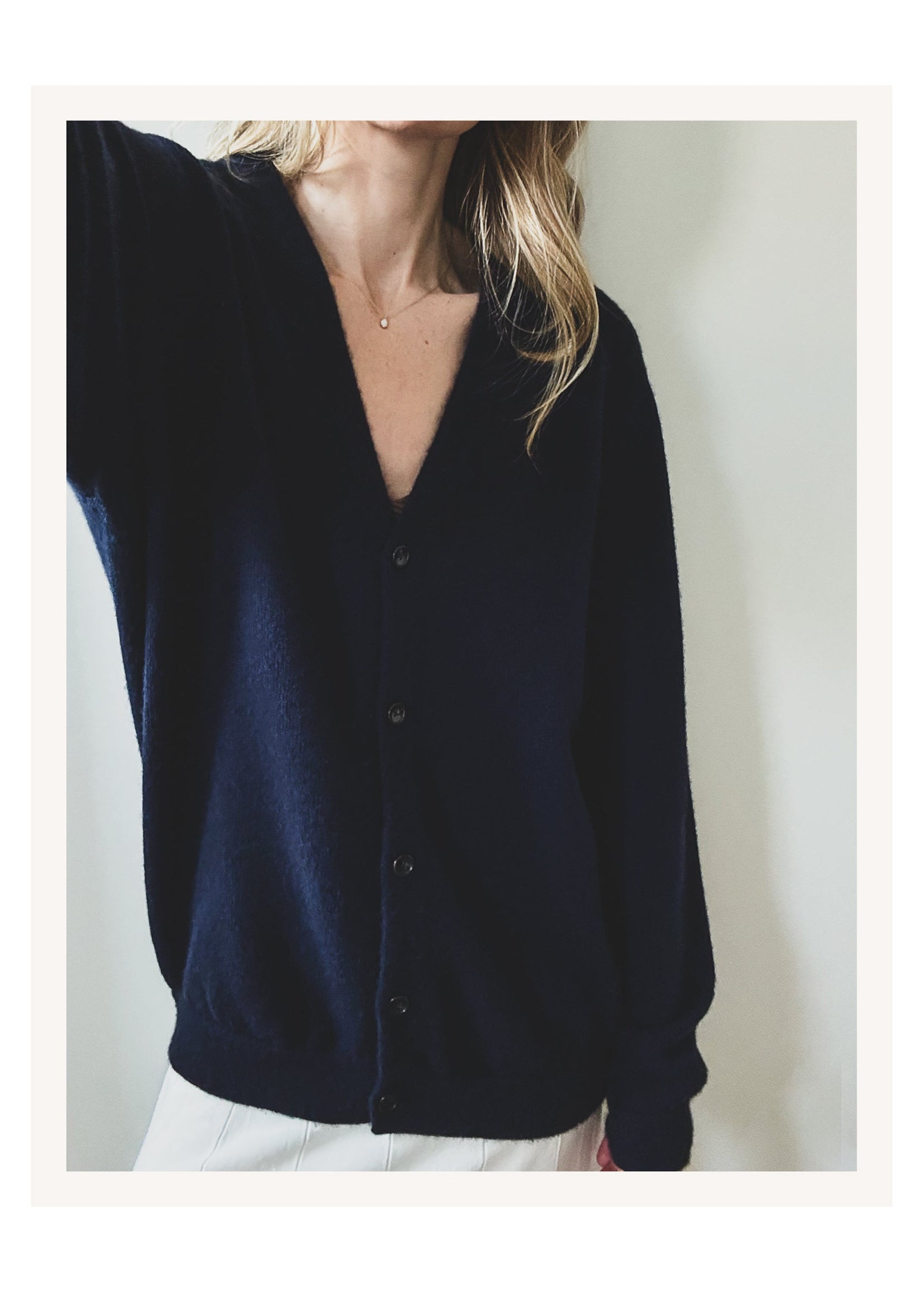 SW04 Charlie Cashmere Cardigan, Navy - Scottish Cashmere